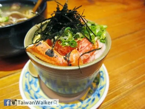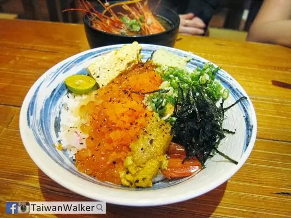 另一位朋友點的牡丹蝦海膽丼, 店員問說要不要把蝦頭來做湯
