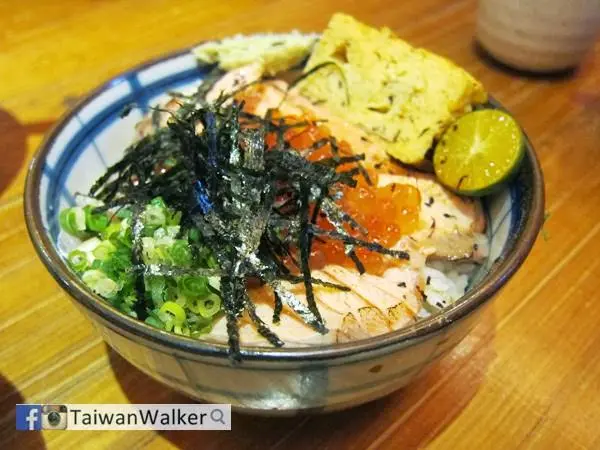 朋友的烤鮭魚丼, 他說好吃, 鮭魚沒有烤過熟, 肉質也蠻嫩的