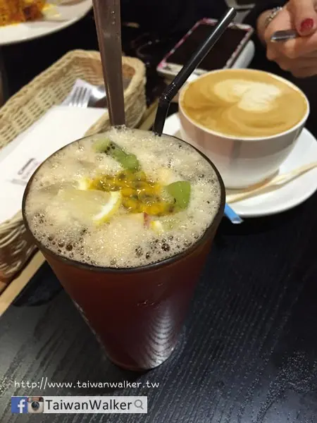 非常普通的咖啡跟美好水果茶,美好水果茶的茶香比水果香來得重,我自己是期待喝水果味比較重的水果茶多一點