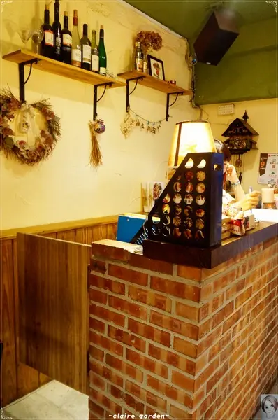 有一個大木櫃上擺了許多醬料也是一個很顯眼的裝飾呢