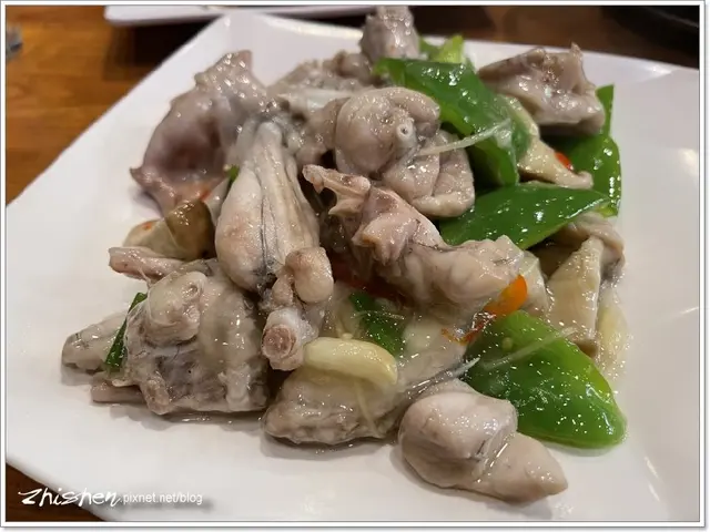 田雞用的來美國牛蛙,清炒芡打得重些小小可惜,不過從田雞本身口感上彈口細嫩,還嚐得到自然薄鮮,可知牛蛙新鮮度可以、前置處理也沒有隨意馬虎。