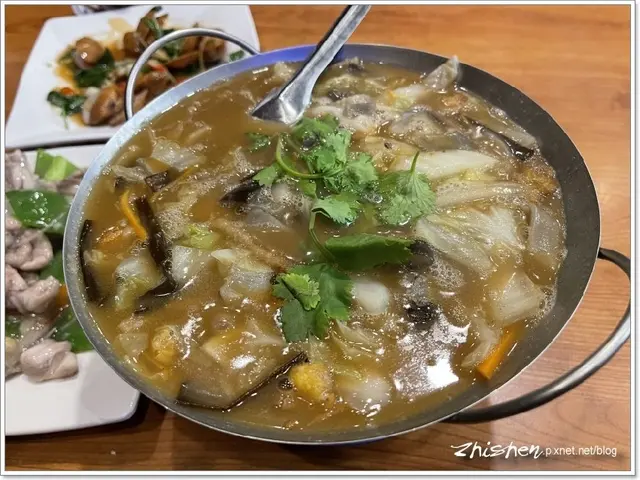 白菜魚皮,蛋酥的香氣,溫潤的酸香韻味,讓魚皮的彈脆、白菜的回甘有了更好的風味層次,有點兒像是古早辦桌的那種大鍋白菜滷,很樸實,但粉好吃,後來是舀來拌飯到湯都快要沒了