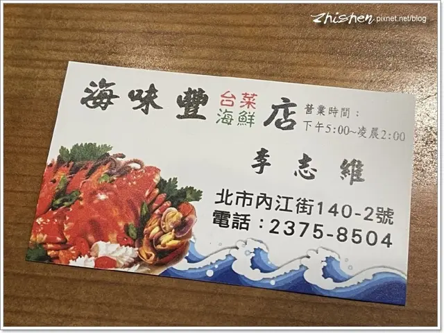 【海味豐台菜海鮮】位於萬華內江街上,惠安四神湯的隔壁,這天初訪有點兒臨時起義,沒有事先電話預約,下場就是沒有室內座位可坐後來是請老闆娘阿姨幫忙讓我們可以坐在門外的單桌用餐,才順利完成初訪,真的是非常感謝