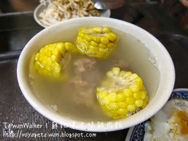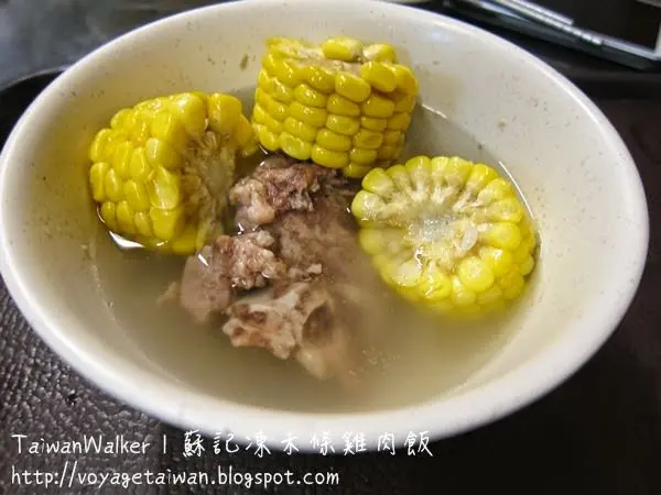 這裡的主打當然是雞飯, 除此以外, 還有玉米排骨湯跟小菜可以選