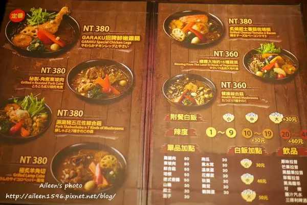 先給大家看看スープカレーGARAKU湯咖哩的菜單,其實內容還蠻簡單的。