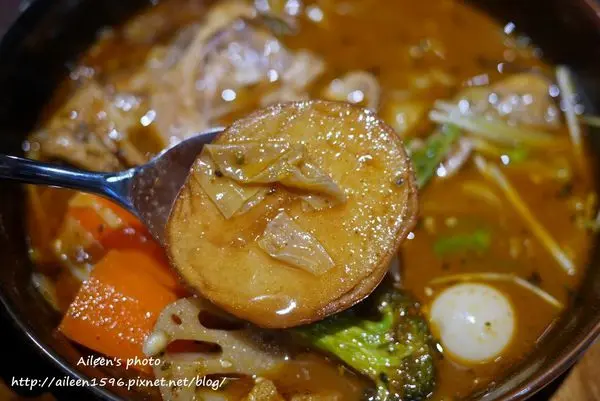 他們家湯咖哩的湯頭真的很棒,喝起來除了有蔬菜的甜味還有淡淡的藥膳香,