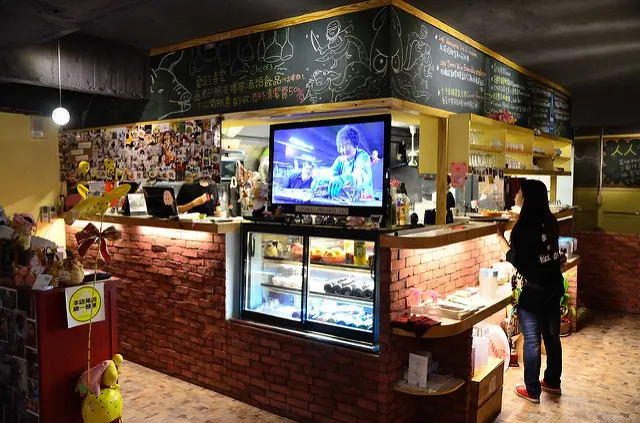 吧台及廚房,磚造的造型很有歐式小酒館的FU~