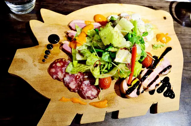 盤子還是豬造型的木盤呢!精心製作的四種開胃菜~