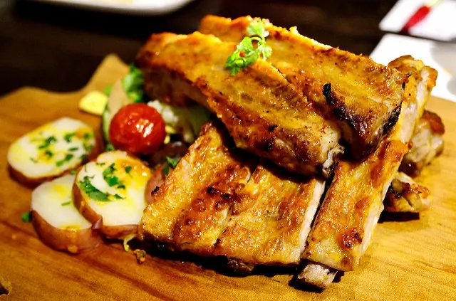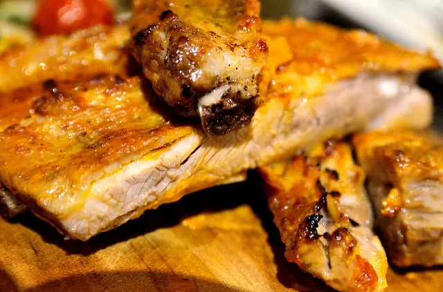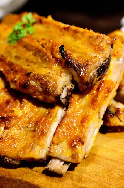 刷滿醬料烤的金黃的豬肋排,噴香~!