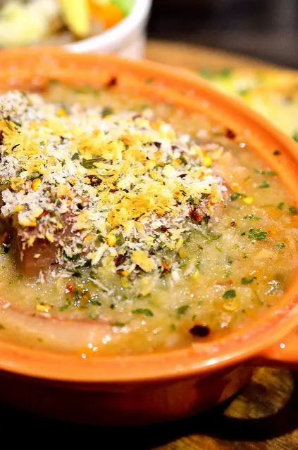 熱呼呼的燉菜,上頭灑上起士粉等香料