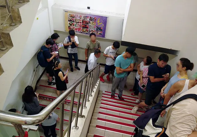 我們走到排隊尾巴看看時間7:38(聽說5號出口出來就會接到這裡)