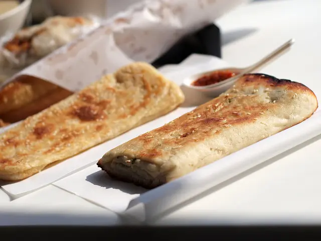厚燒餅(NT$28)是店家招牌,刷過糖水的表層烤出光亮增加脆度和一點點甜度。