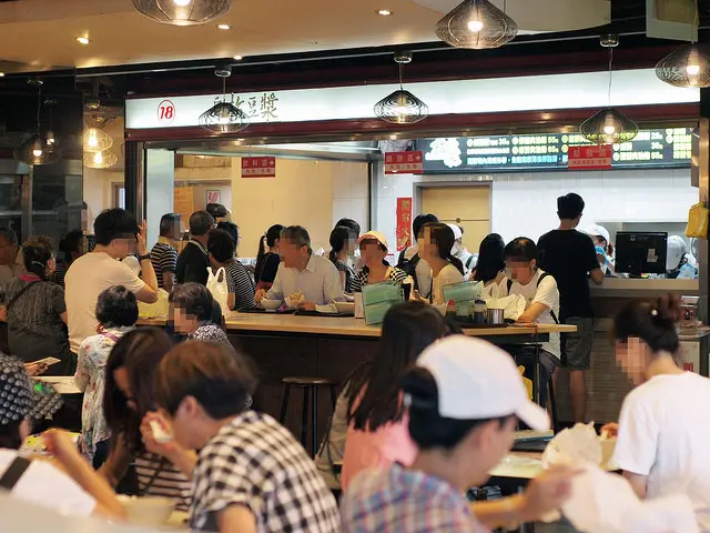 我們被夾在日本人和香港人之間,這條人龍很多觀光客,一路排上二樓,門口聞到豆漿香~
