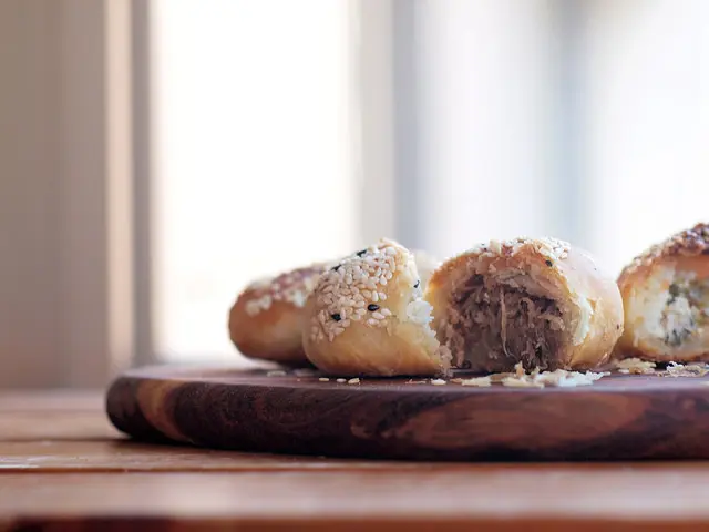 蔥花鹹餅(NT$22),蔥有鹹,餅無鹽,每一口有鹹無鹹沒個準