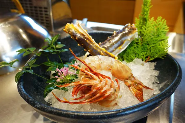 每做一道料理時,廚師都會先給我看過食材、並做簡單的介紹,海鮮部分我吃鱈場蟹、陳先生選了明蝦