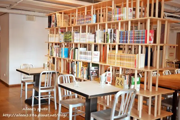 有一個很特別的地方是這裡擺了許多的書架來做區隔,