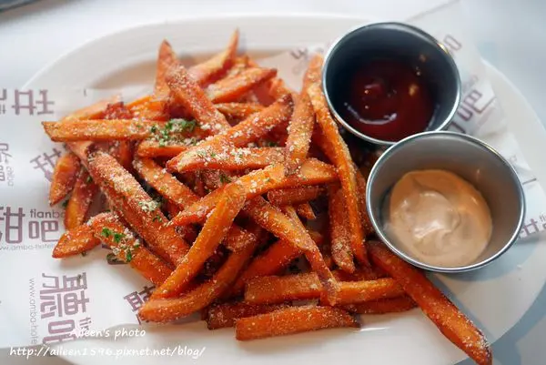 如果一點點辣都沒有辦法接受的人,這個紅地瓜脆薯沾蕃茄醬也非常好吃。