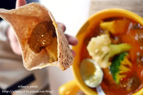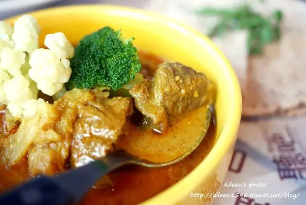 因為是比較偏印度式的咖哩,所以吃起來帶有微微的辣度,而且香氣比較重一點。