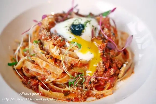 上面的水波蛋流在義大利麵上的樣子就讓人口水直流,還有松露醬也讓義大利麵變超香。