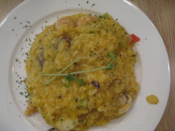 吃起來有南瓜的甜味還滿好吃的.裡面有蝦仁.花技等等的海鮮份量也不少呢.覺得還滿划算的