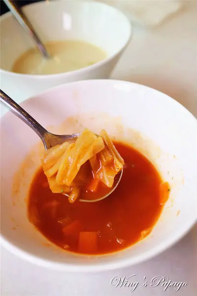 富含蔬菜鮮味,爽口甘甜,份量不多,喝完一碗還真想再續碗呢!