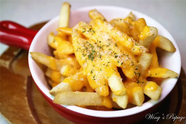 薯條其實早午餐內也有附,不過這道單點的多了誘人的起司醬在上頭,
