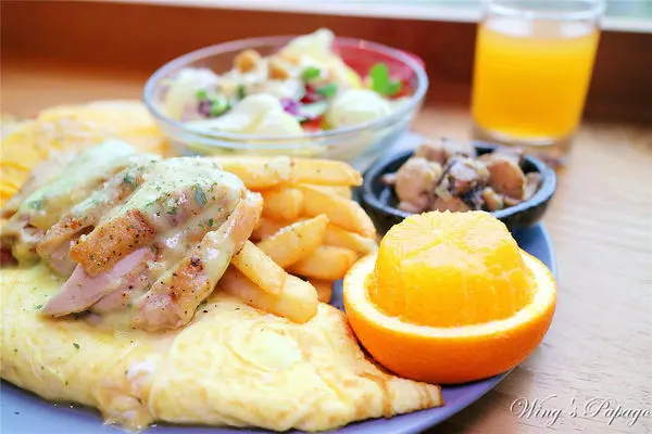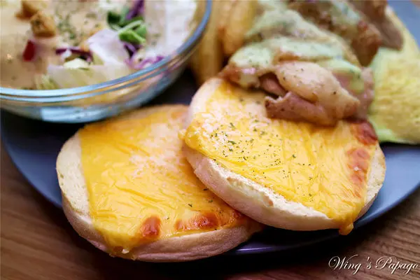 均附沙拉、薯條、當日配菜、水果、果汁、玉米麵包、飲料等,