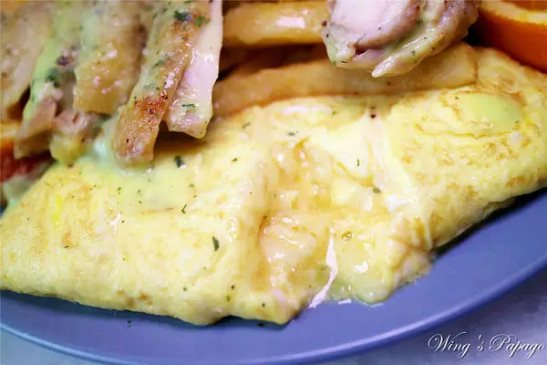 切開歐姆蛋內有大量起司流出,柔軟的歐姆蛋蛋香味濃,