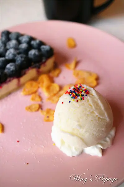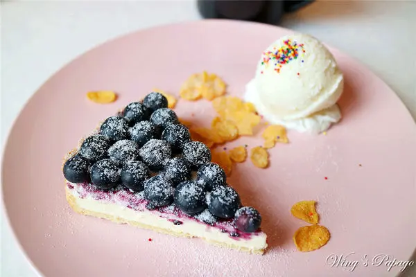 藍莓派單吃就很有味道,搭配一旁附上的義式香草冰淇淋食用,