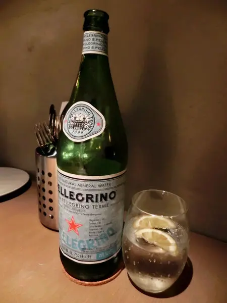 MUME 的水資是算瓶的不是算人頭,我們選了 S. Pellegrino 氣泡水 NT199/瓶 (已含服務費),這天喝了兩瓶,送水的時候店員就會詢問是否要加檸檬片。