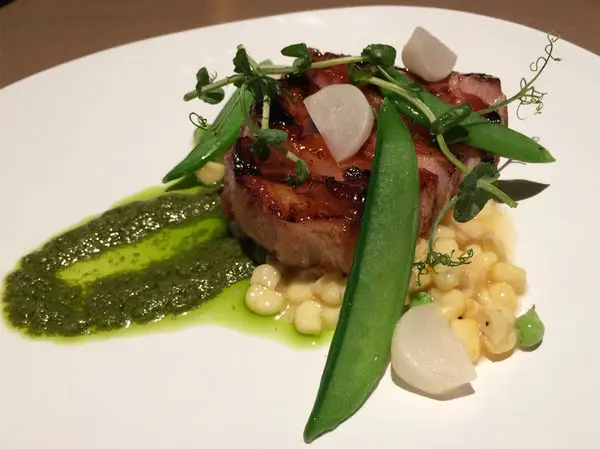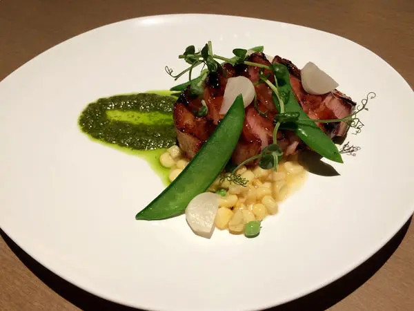 相對小菜看起來比較台味的豬頸肉,下方是奶油玉米,還用常見的豌豆當配菜,味道很好但沒啥驚喜