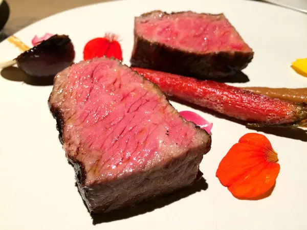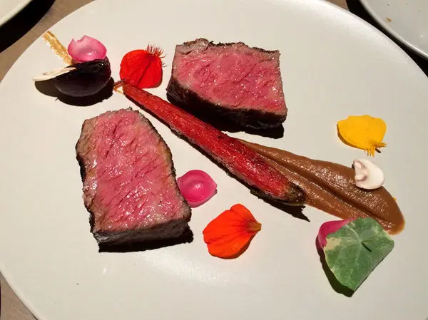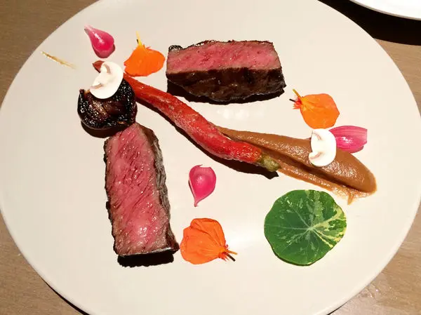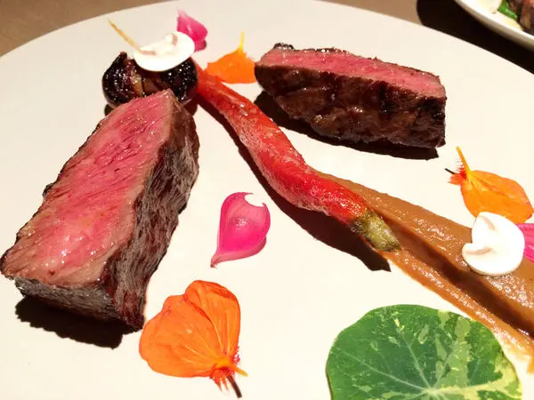 用花瓣點綴美得不像話,讓人捨不得切肉破壞美景,硬是拍了許多照片。