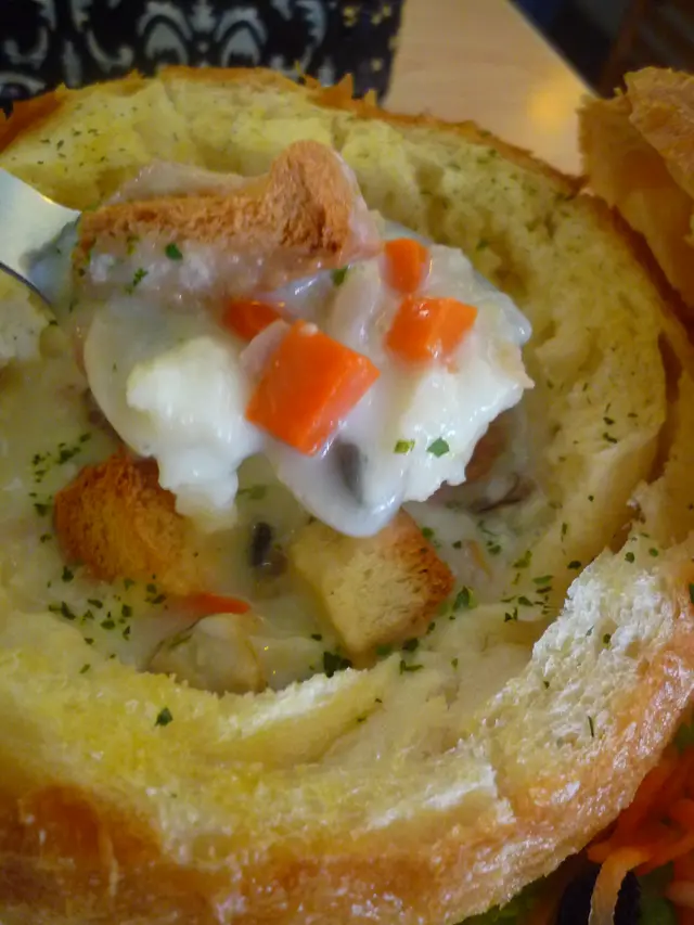 蛤蠣濃湯盅+飲品優惠卷也才80 附近的上班族 天涼好個秋 快來喝濃湯喔