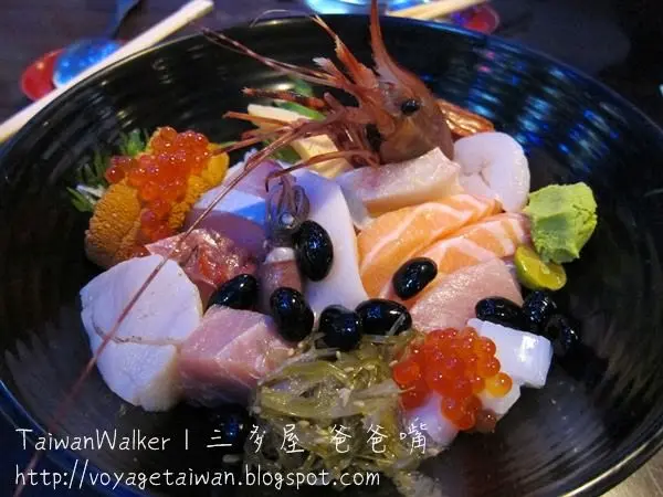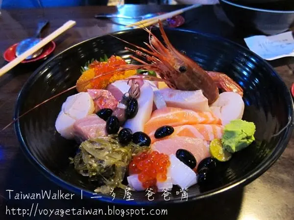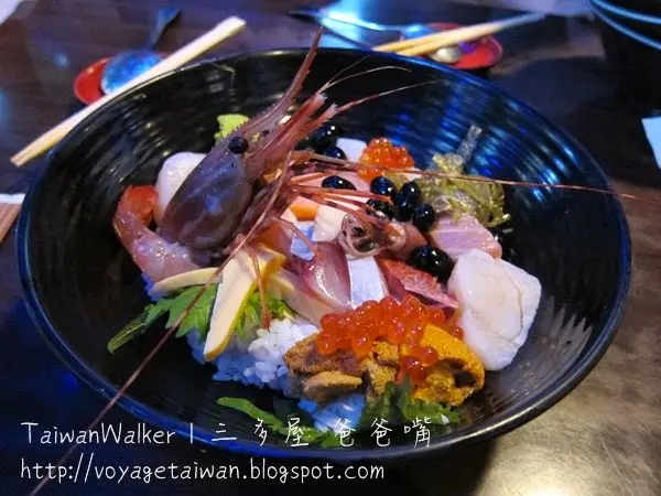這是生魚片蓋飯,料很多, 其實如果單單想吃新鮮的生魚片點這個也已經很夠了, 250NT