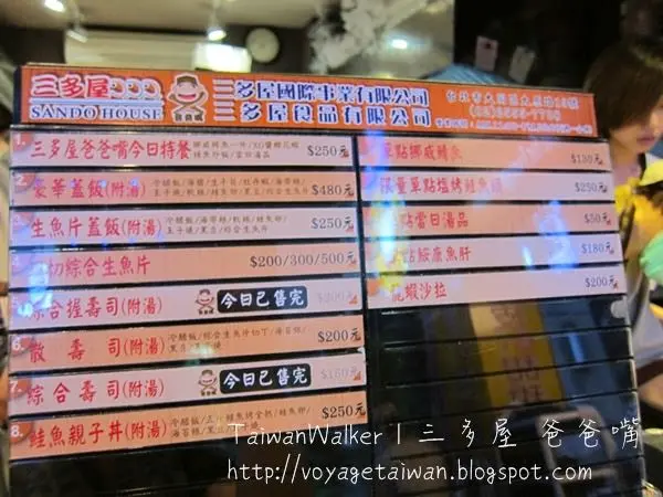 那邊的菜單. 壽司常常很快就賣完. 價格比較親民啦. 我們選好了, 我要豪華蓋飯, 朋友點了生魚片蓋飯