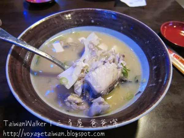 點餐就會有的湯, 應該是用他們用剩的魚肉加入一些味噌去煮的, 很鮮甜好喝,連魚肉也蠻好吃的, 而且也太多了吧, 喝完吃完這個其實有點飽了