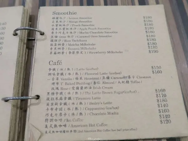 飲料類則有冰沙、咖啡、茶類可以選擇
