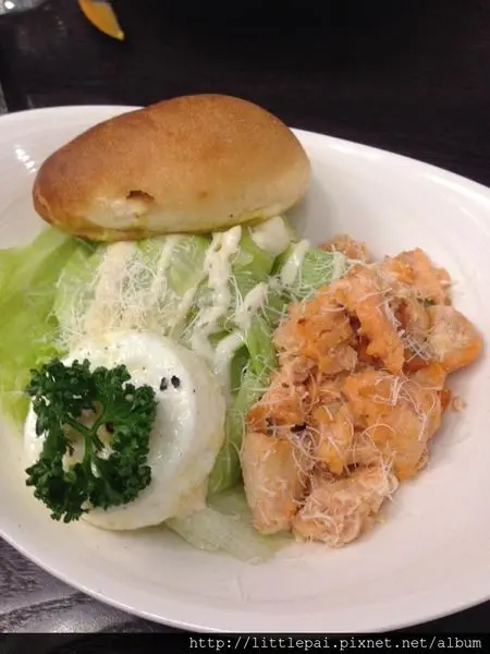 生菜超少的!!!還好有附麵包~~要不然我會餓扁XD