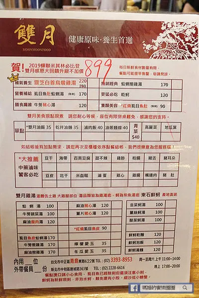 【雙月食品社】又蟬聯2019台北米其林必比登推薦名單內!吃過的人很難忘他們家的養生雞湯,除了一般人喜歡吃外,對產後要做月子的媽媽,是月子餐的首選。又有台北米其林連續二年的肯定,也讓大家都吃得很安心!