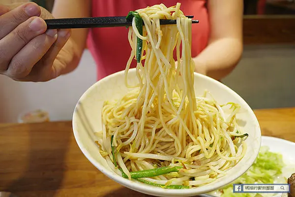 乾拌油麵35元,加上香噴噴的油蔥和韮菜、豆芽菜,簡單的平民美食。