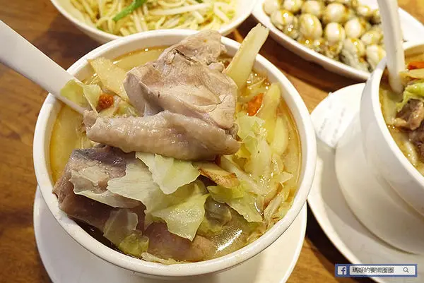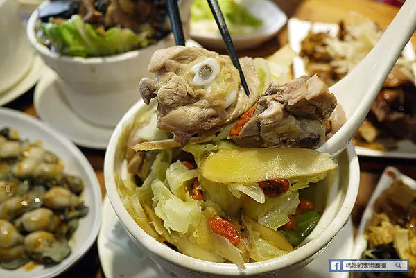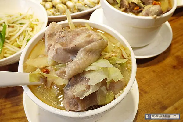 麻油燉雞湯170元,店內採用仿土雞大雞腿的部位,加上大量高麗菜和枸杞、薑片,一碗滿滿像小山的雞湯,讓人看了猛嚥口水。