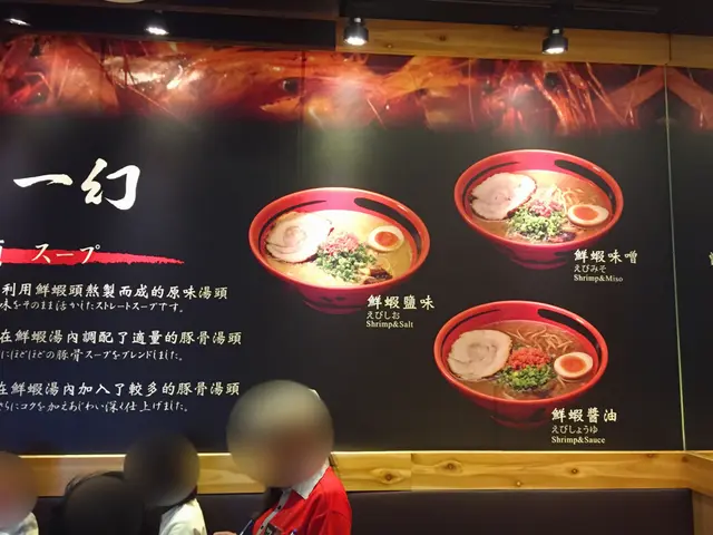 湯頭有三種可以選,就是蝦頭湯和豚骨湯頭的比例不一,口味還分了味噌、鹽味和醬油三種,麵條也有分粗細。