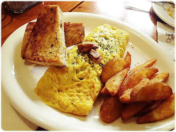 香料炒菇歐姆蕾,半月型薯條,配上麵包,還有軟滑的歐姆蛋,也還不賴。