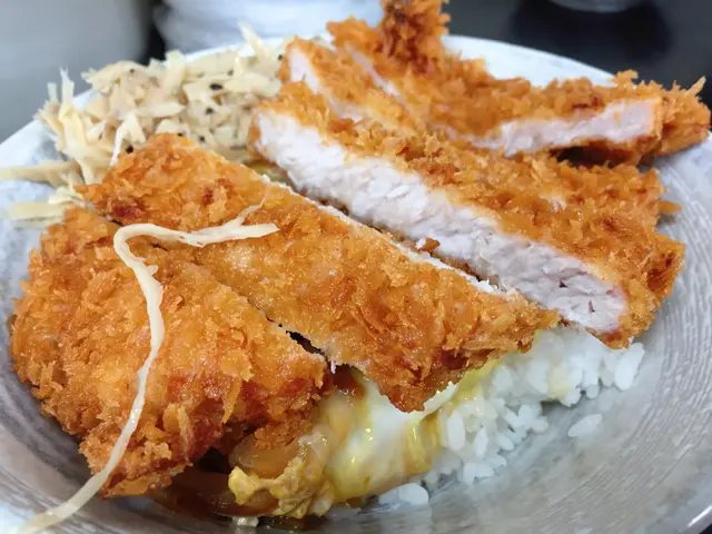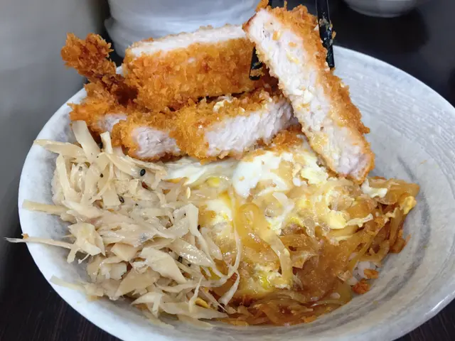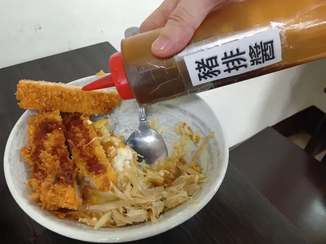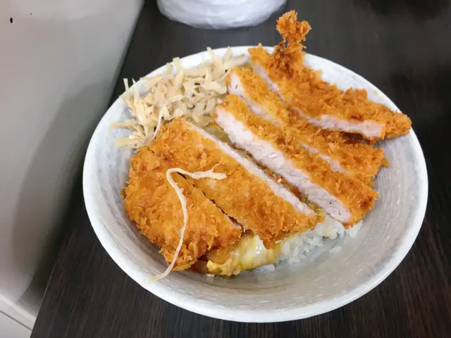 豬排蓋飯,日式炸豬排皮酥肉多汁,沒有過多的調味,可以依自己口味淋上美乃滋或豬排醬。