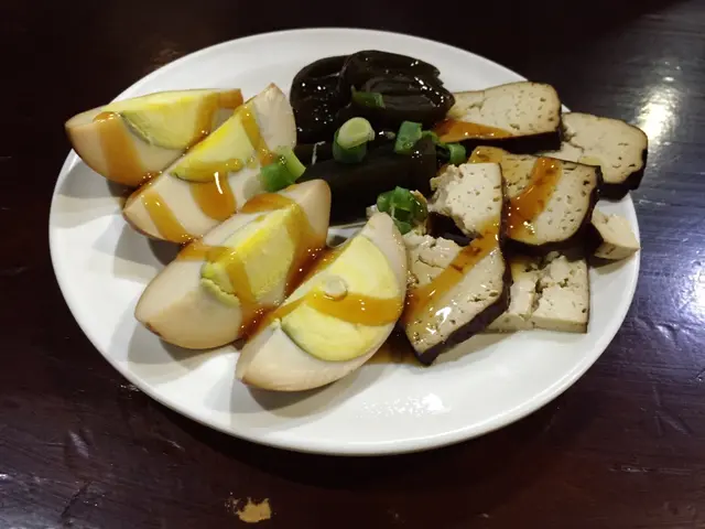 先來個小菜基本款,豆干海帶和滷蛋共30元,就一般口味還不錯。