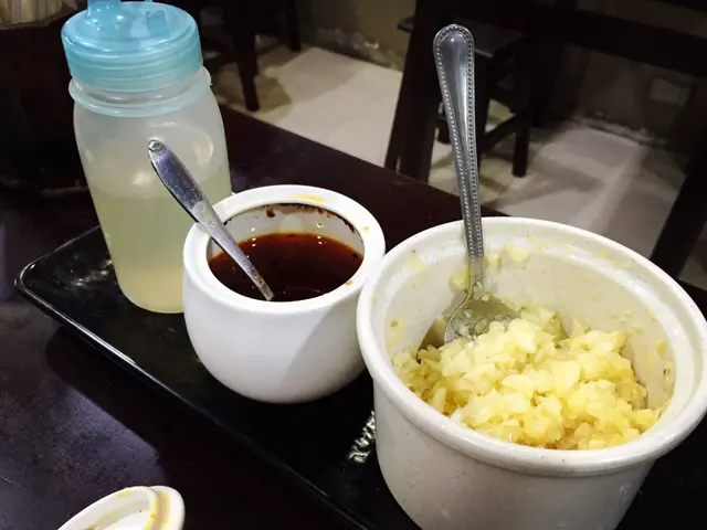 桌上有三種調味料,可以加醋、蒜和辣醬,讓搶鍋麵更有味道。
