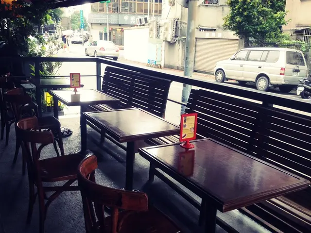 戶外的座位看起來挺不錯,但我想適合晚上吹風喝點小酒,炎熱的夏日午後我們只想進去室內吹冷氣><
