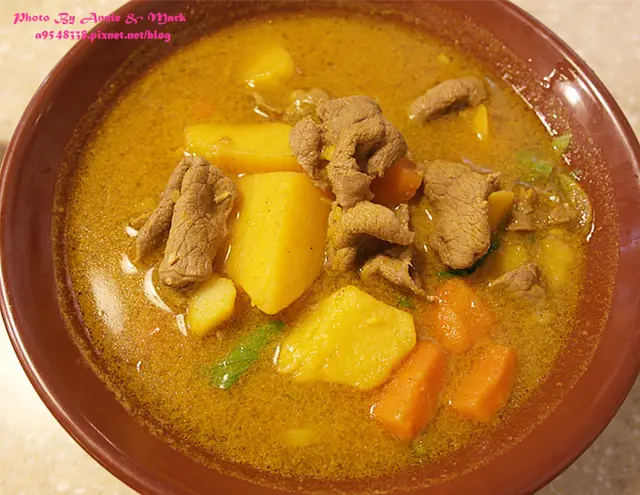 馬鈴薯和紅蘿蔔都燉得很軟,