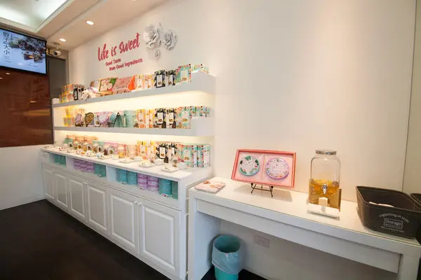 店內不大,除了展示商品櫃、客製化區、廚房之外,就沒有別的位置,