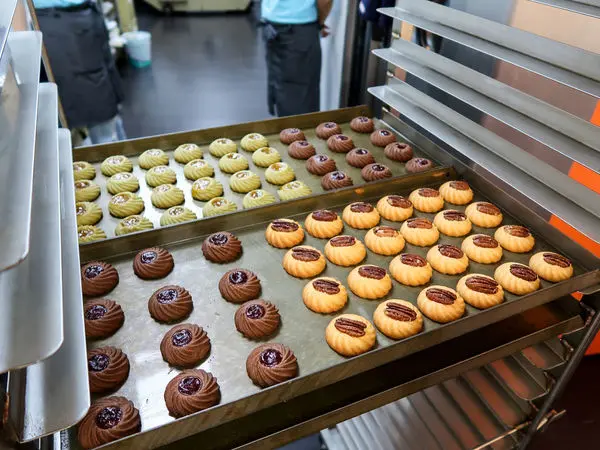 每一塊曲奇都製作成花朵般的形狀,整齊排列著。